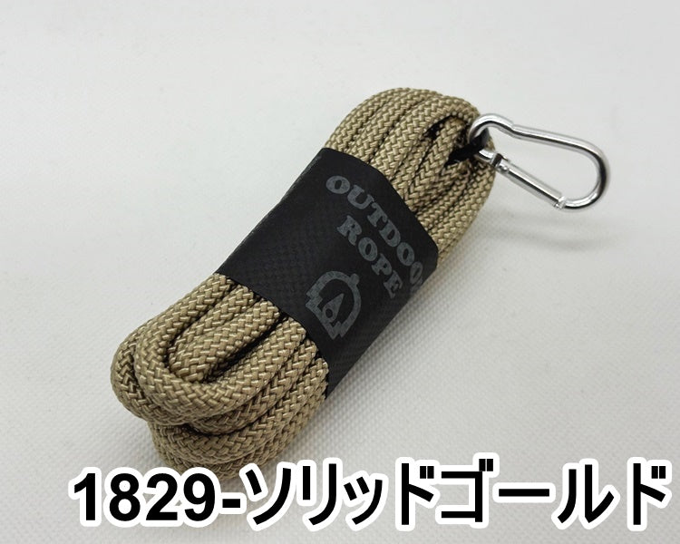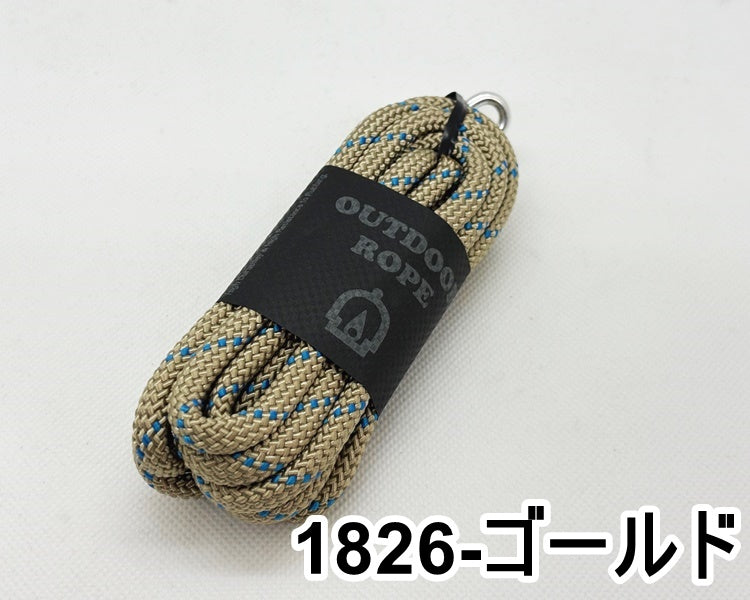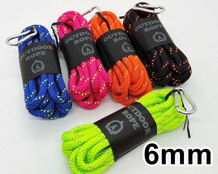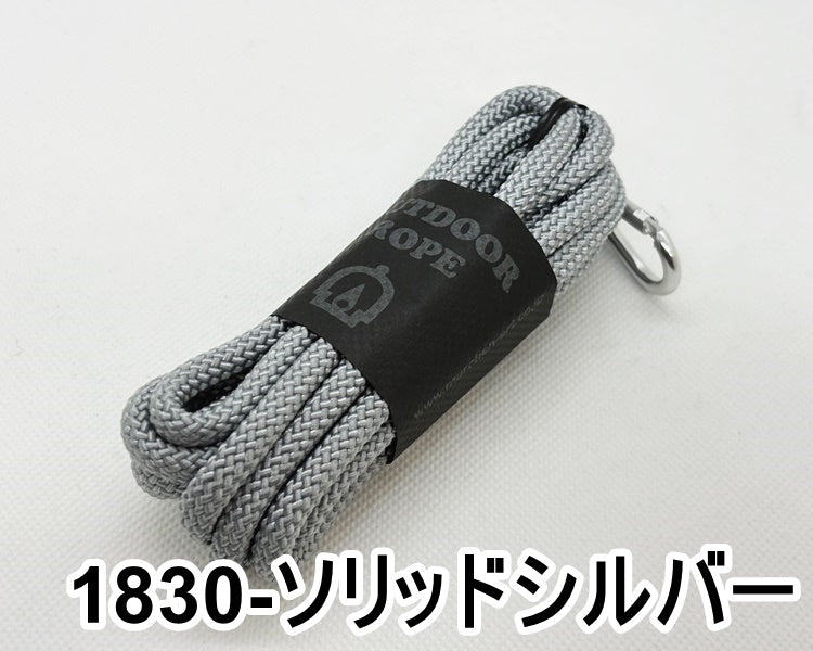 こちらのアウトドアロープはクライミングロープを作っている工場で特注した引張強度のあるロープです。6mmで800kg、8mmで1,300kgの強さがあり、ポリエステル素材なので耐久に優れています。